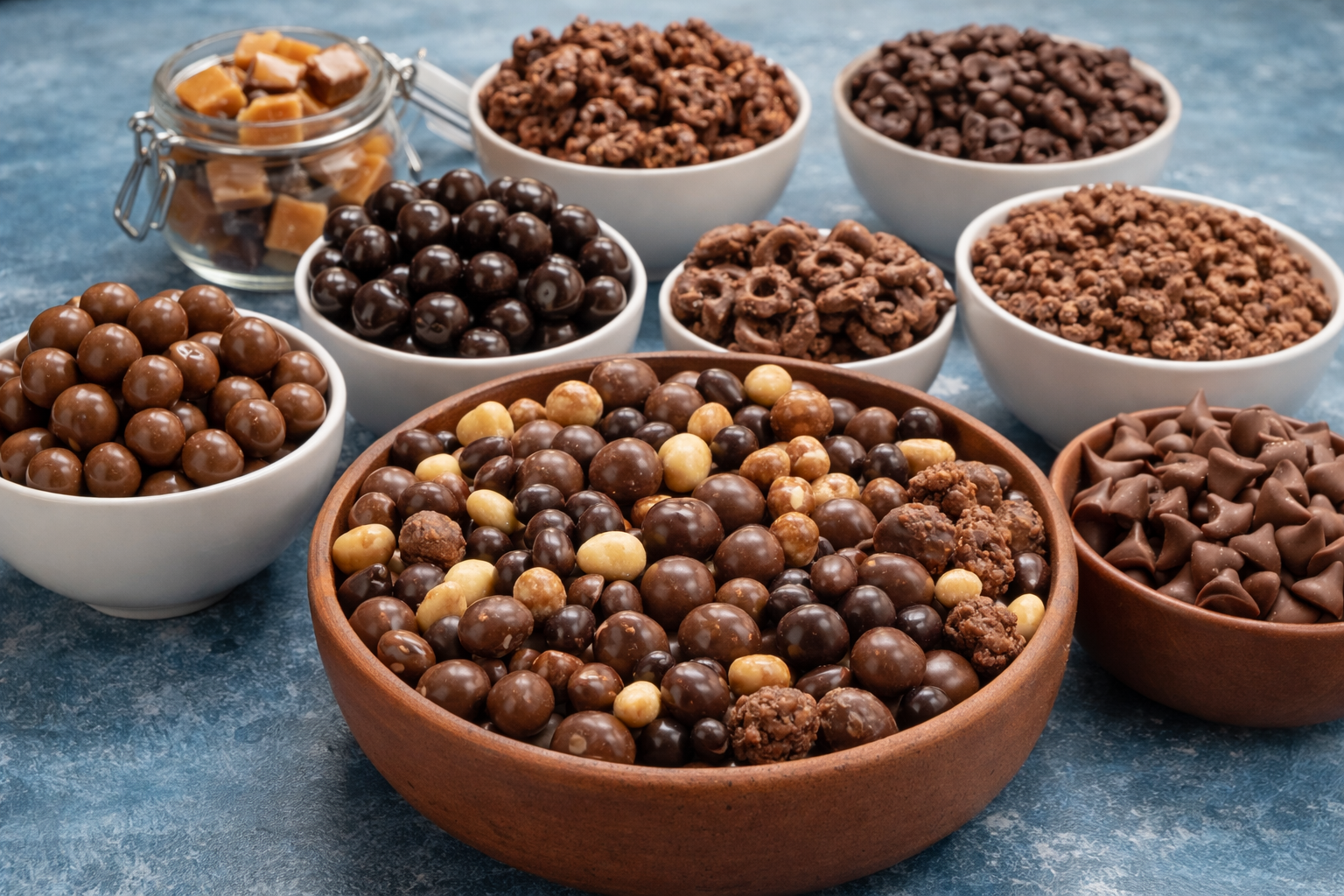 Le nombre de variétés dépend du forfait et du nombre d’invités. En général, une large sélection est offerte afin de plaire à tous les goûts. Bonbons sûrs, sucrés, chocolatés et gélifiés sont inclus. Chaque bar est pensé pour offrir variété, couleur et abondance.